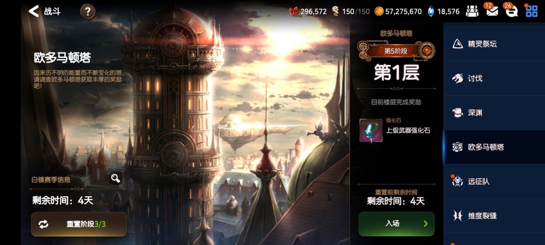 2、以半个月为单位的欧多玛顿塔和考验殿堂