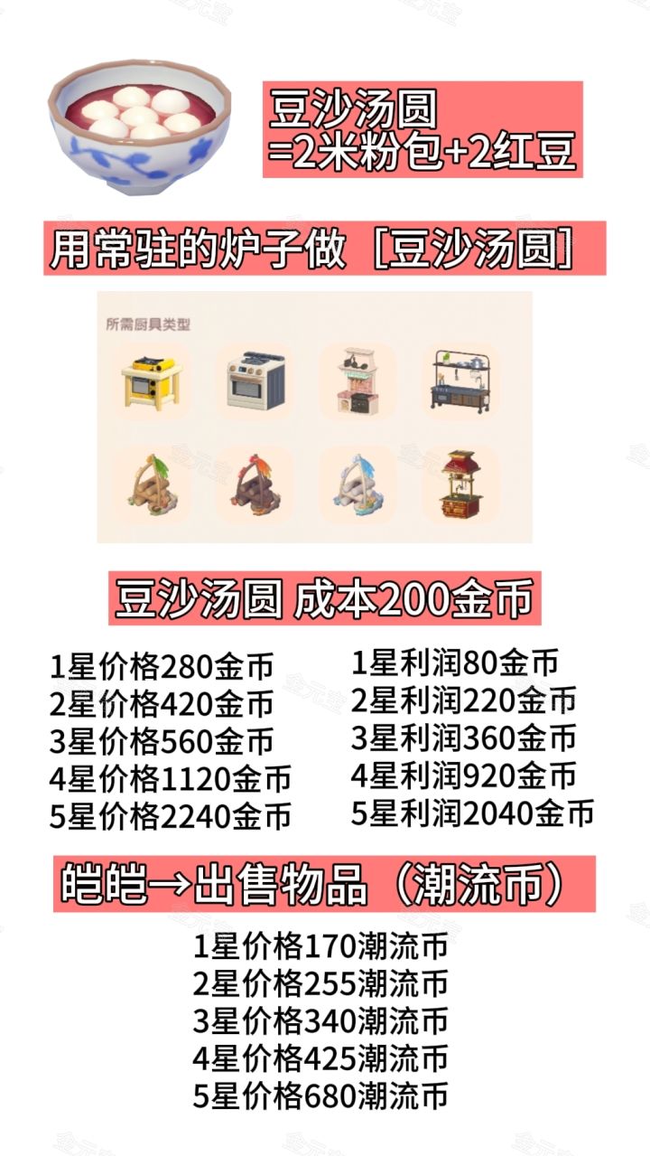 豆沙汤圆 成本200 金币
