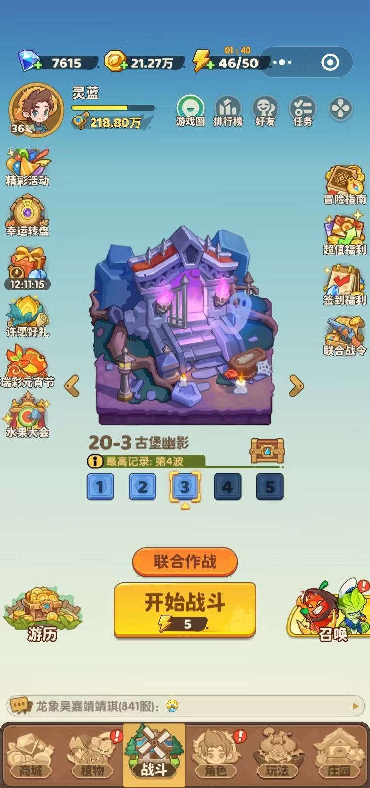 4.如果想去堵保留植物,可以去12-1或者前面随便一个对你来说好打且能放下6个你需要的主力植物的关卡,打到第10波时,留下除向日葵和人参果外至少6个植物,然后在这6个里面抽,我总是抽格子,所以不建议,就正常开局只要打过前三波,第四波小怪出来,如果场上有6个植物,也是可以抽保留植物,开局多个2级冬瓜帮助就很大。