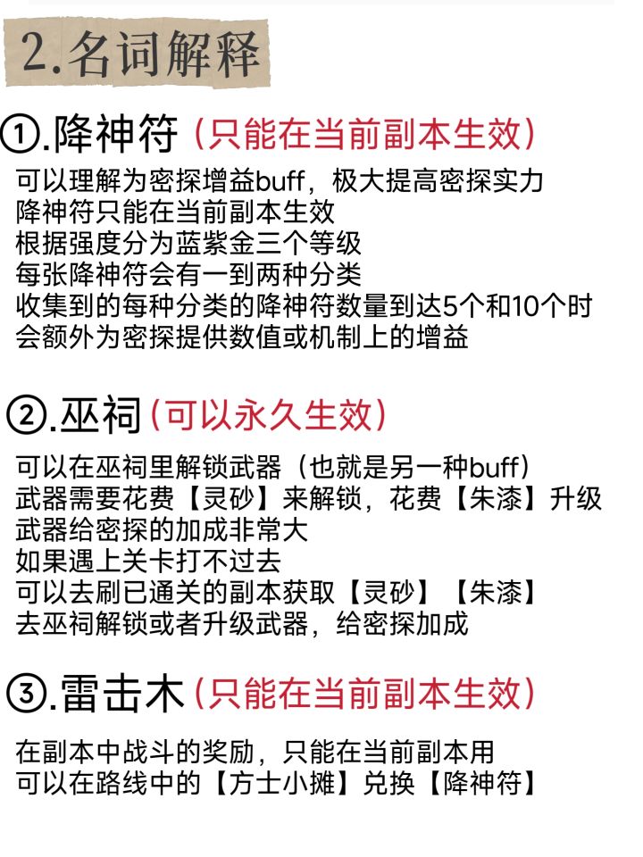 简单描述就是进入副本→刷降神符给密探加成→通关副本→去巫祠解锁或者升级武器→进入下个副本