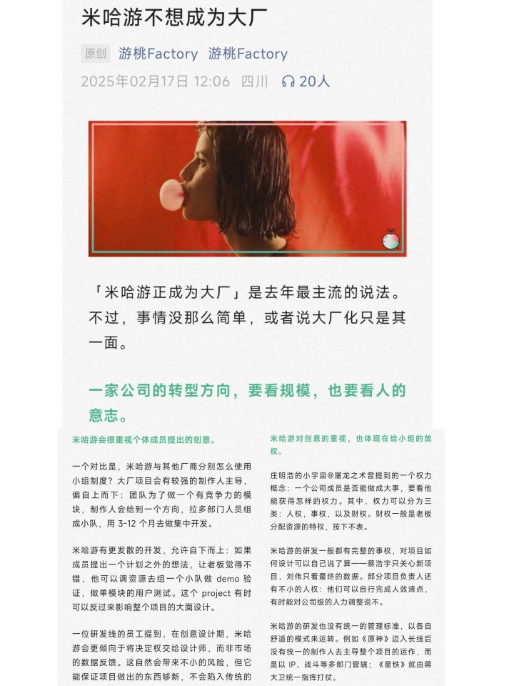 米哈游大厂化并不意味着完全像腾讯网易那样,事实上腾讯网易就算是大厂思路也是不一样的。