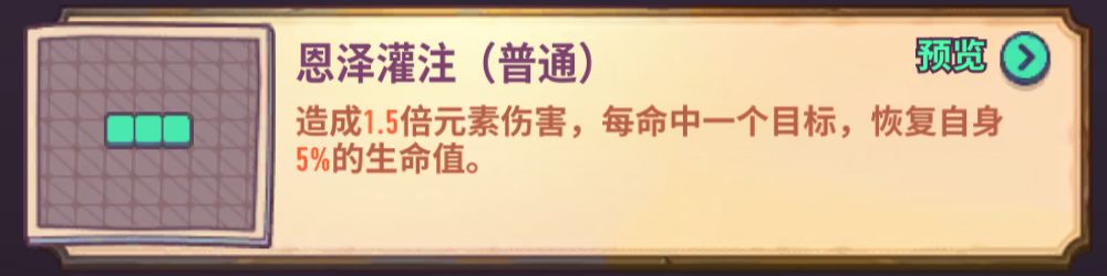 造成3倍元素伤害,每命中一个目标,恢复自身10%的生命值。