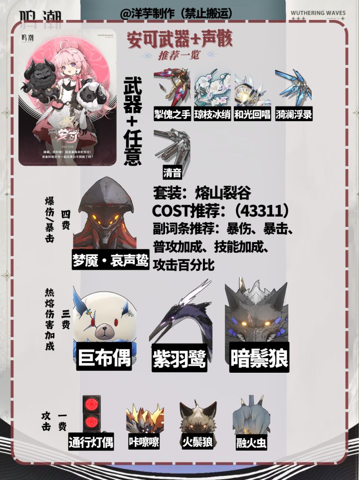 图文包含深塔配队,安可武器、长离武器、守岸人武器推荐、长离声骸、守岸人声骸推荐!希望各位能够喜欢!