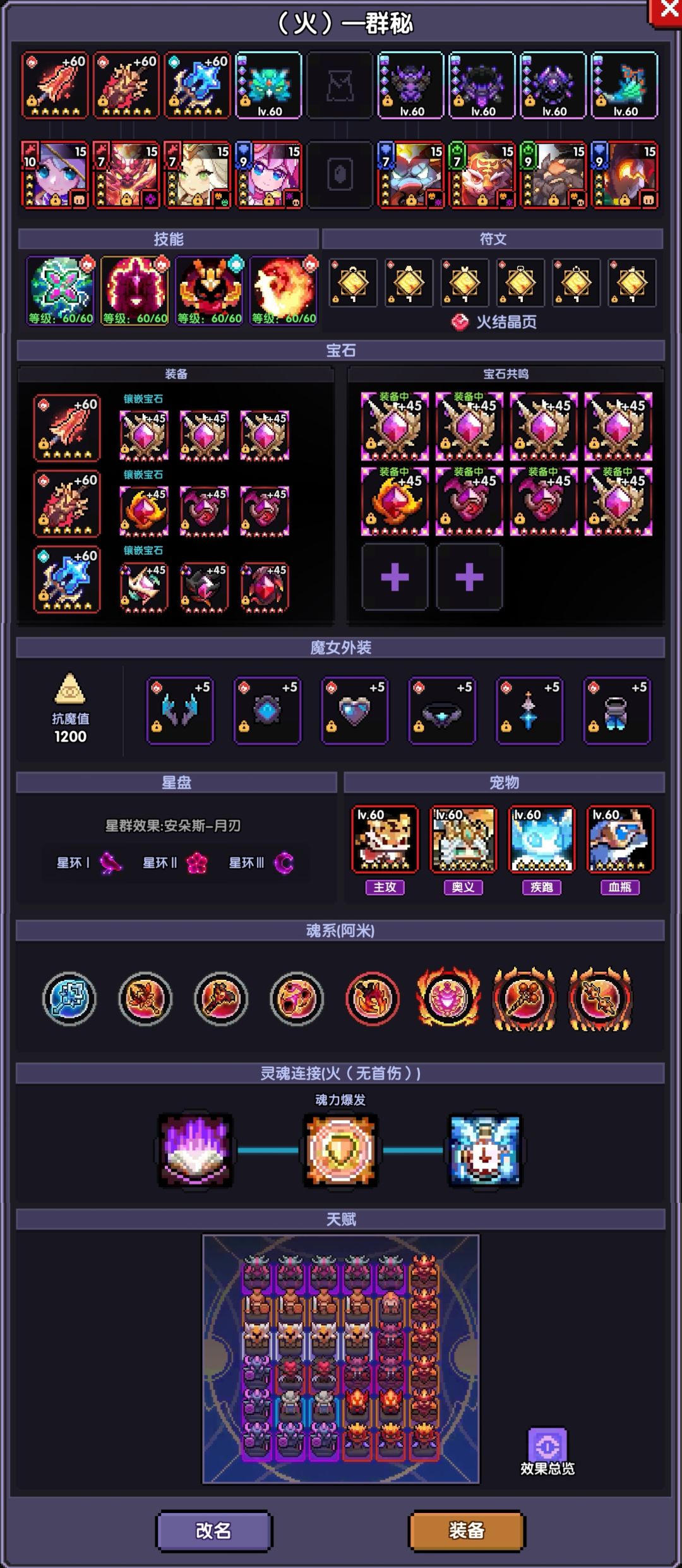 (ps.暴击不够尽量不要通过左上方的小符文来补,非常亏;可以通过右上角大符文、项链戒指的洗练来补。右方的小符文根据实际情况调整,由于水英魂给了很多的属攻,因此通常情况可以先拿火攻部分来调整护穿。)