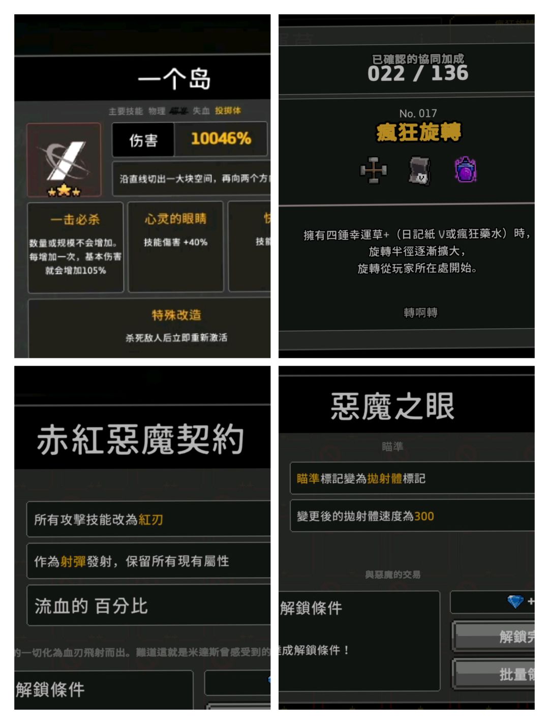 4.我们可以通过“疯狂旋转”这个协同,让红刃以自身为起点随机方向发射,变成以自身为起点旋转向外,延长了他在身边停留的时间,只要BOSS的体型越大,造成的伤害判定机会就越多