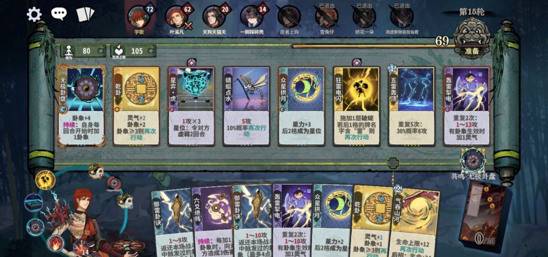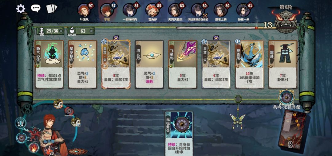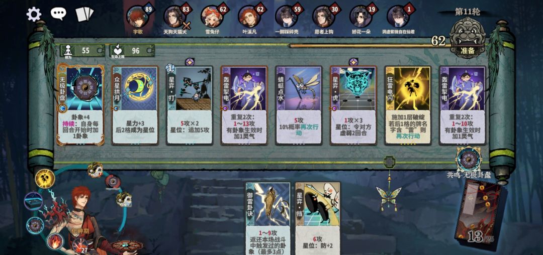 成长流:顾名思义,带星力成长,应对万花减攻或者加血耐耗等拉锯卡组。核心思路是六爻、无极前置,带众星接五雷,循环比星力成长。