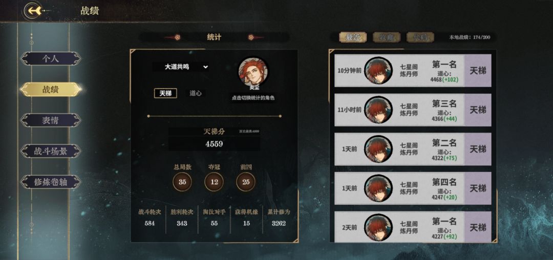 当前环境中,大师兄、杜伶鸳、南宫、锻玄宗、雁子非常多,玩炎尘的道友真太少了,道心4400分就能排进前50名。为了能早点上6000分做闲鱼,继续在炎尘玩法上开发,这里很多经验都沿用之前炎尘的公式化套路。
