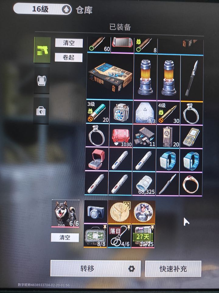 于是痛定思痛不跑工厂了,也不带枪了,看了点小攻略直接选择落日码头跑刀,带个蝴蝶刀加移速健步如飞,保险带三个小包分别装针、雷、钥匙(这个地图爆的针和雷是真的多,捡都捡不完),还能空出三个格子放币子