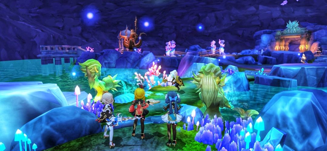 海底洞穴,三条美女蛇在海生树下姿态各异地休息着,她们都没有预料到,未知的危险正在靠近。