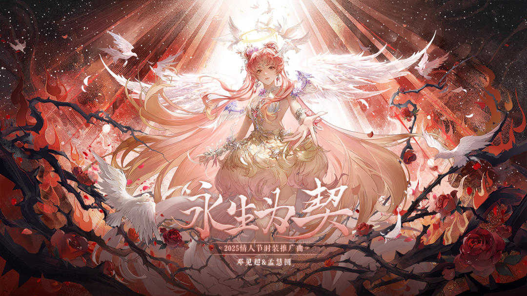 跨越晨暮人海,以永生为契,献上炽心滚烫。枯朽碎裂之隙,爱如玫瑰盛放。永不磨灭,永不颓败。逆水寒情人节时装推广曲【永生为契】已经上线音乐平台!您也可以在逆水寒通过馆藏进行获取。