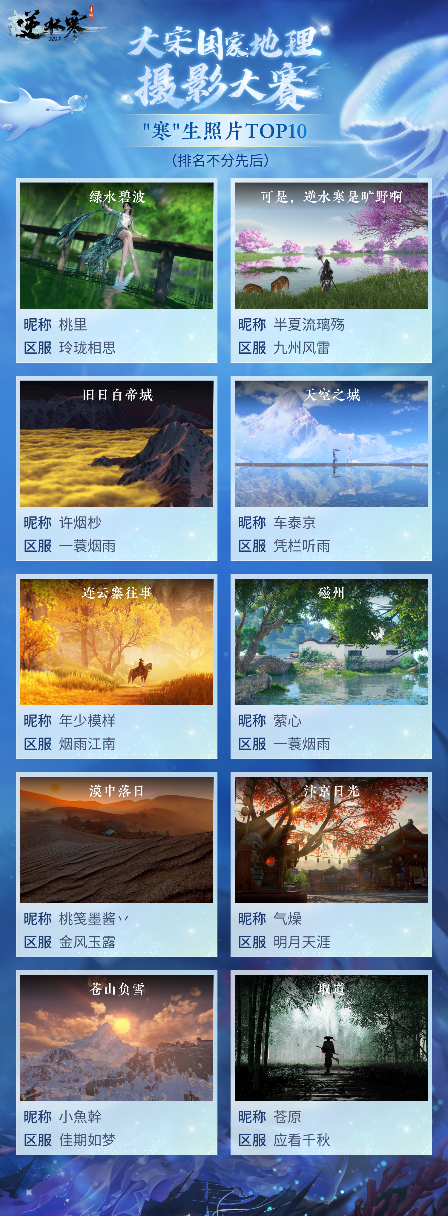 除此之外,大宋国家地理摄影大赛也在火热的角逐中落下帷幕,中国国家地理与信使共同甄选出了【逆水寒十大“寒生”照片】,从春到冬,从云海到雪山,大家留下了超多寒子的人生照片!怪不得说摄像机是爱人的眼睛,大家镜头下的逆水寒都好美,信使在这里挨个亲亲!