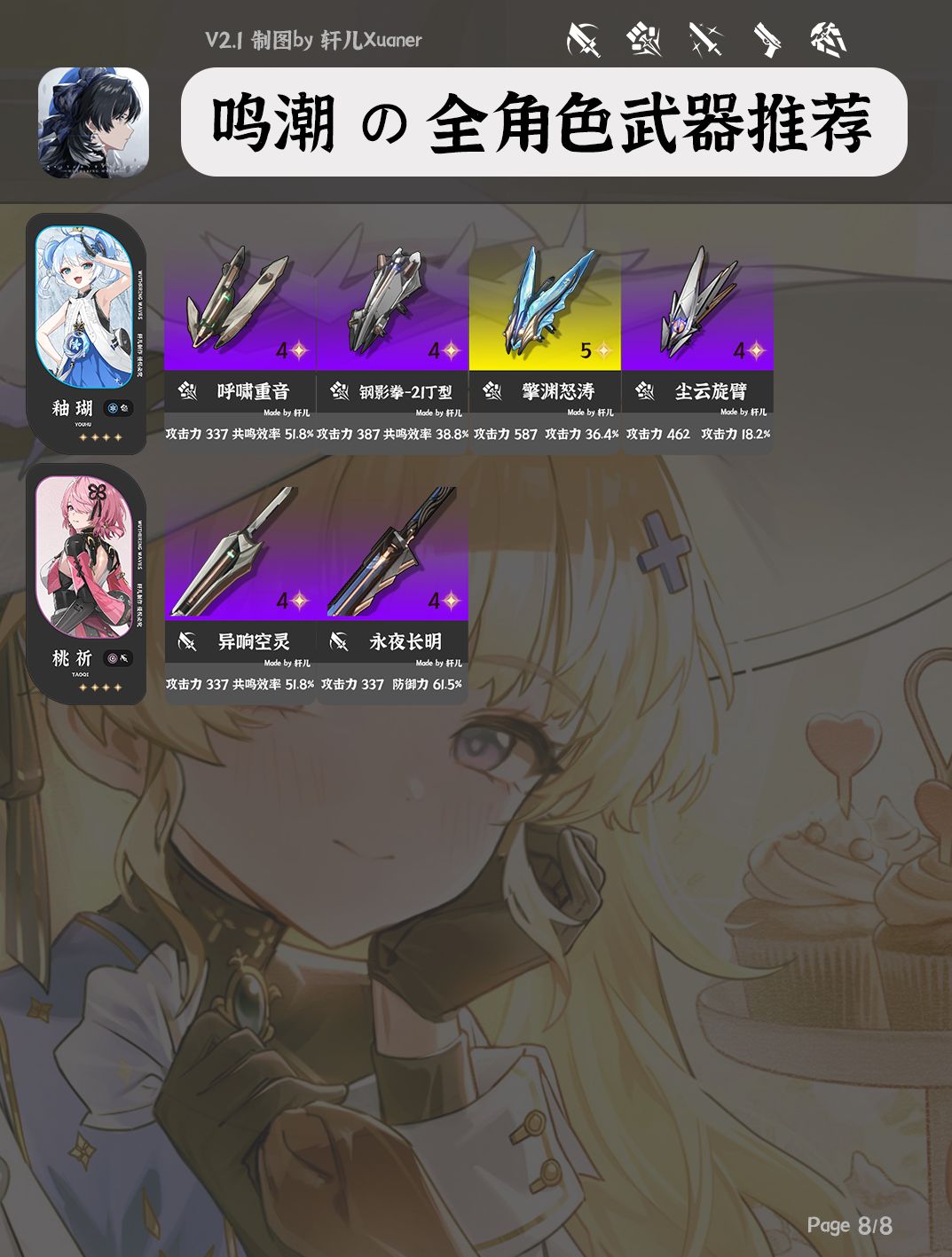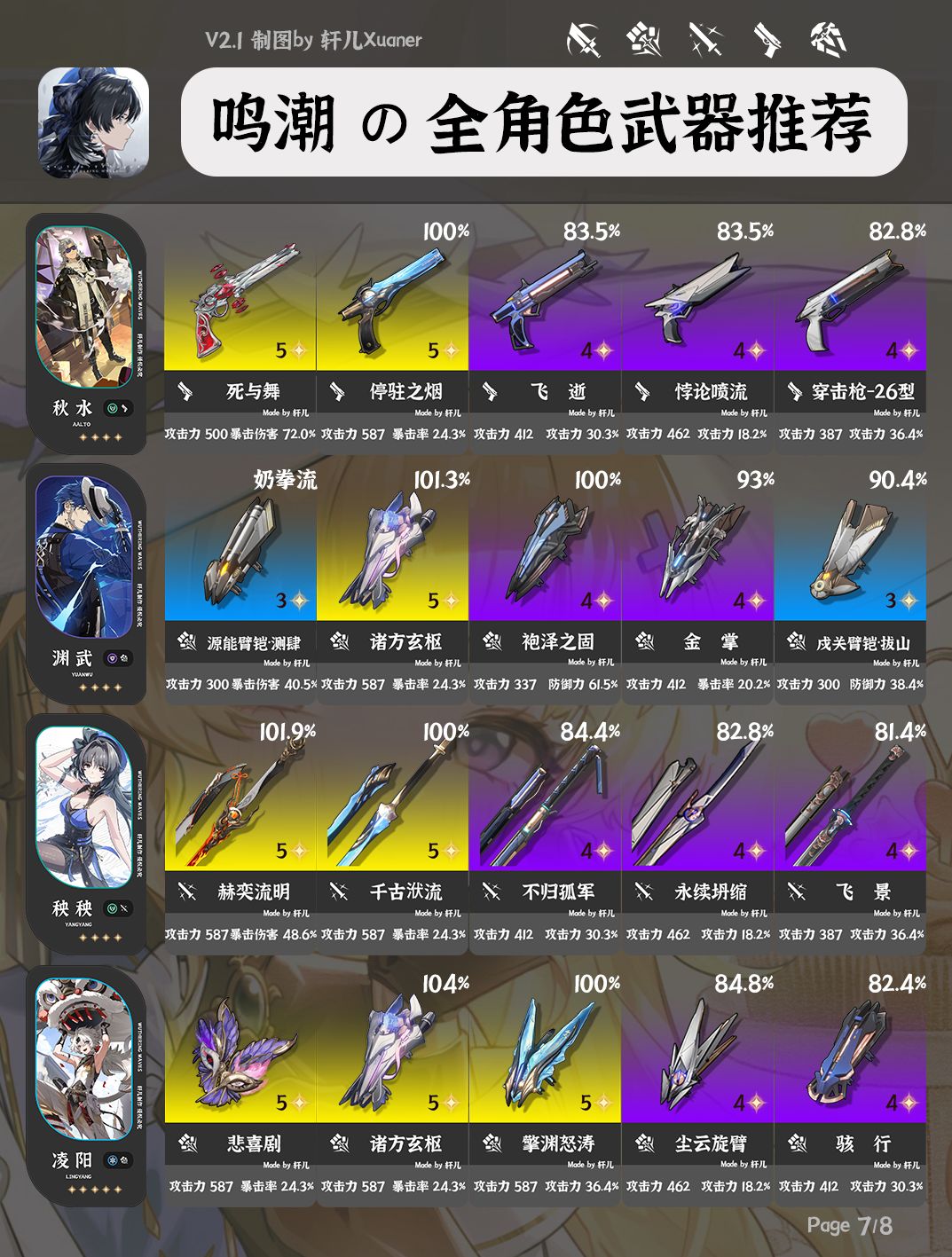 今天给大家带来的是鸣潮V2.1版本30个角色的武器推荐
