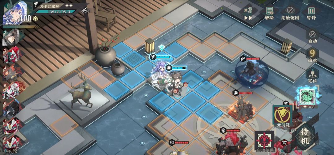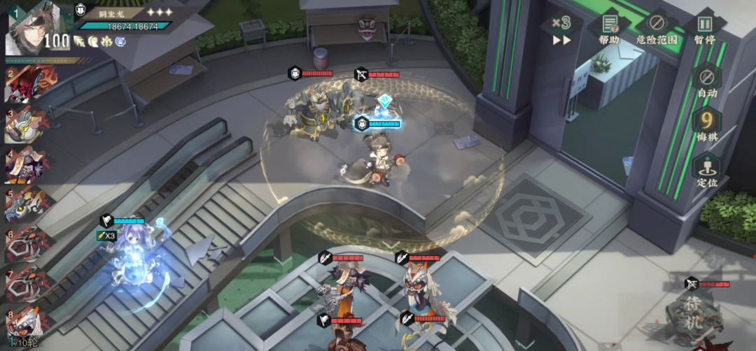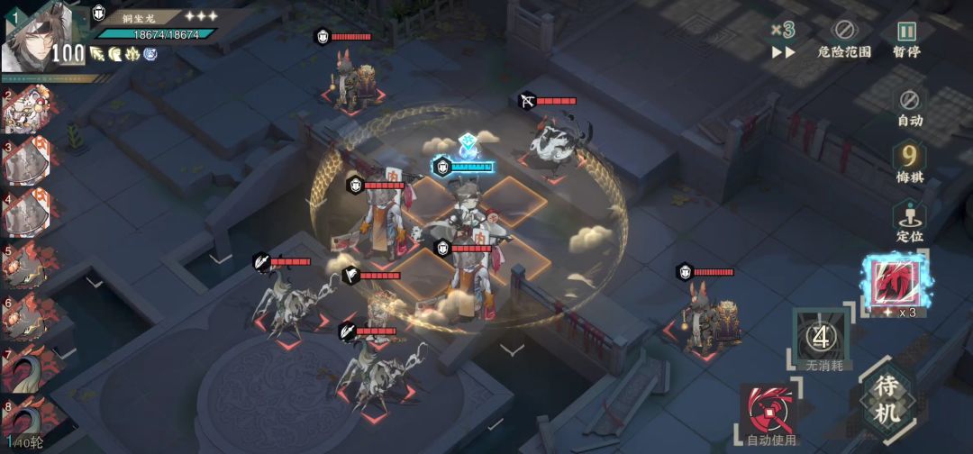 猴二:江崖炉后撤给大招,不然会被前面的怪索敌到。铜坐龙跳后排,可以先把远击怪秒掉并且回击打到宿卫怪