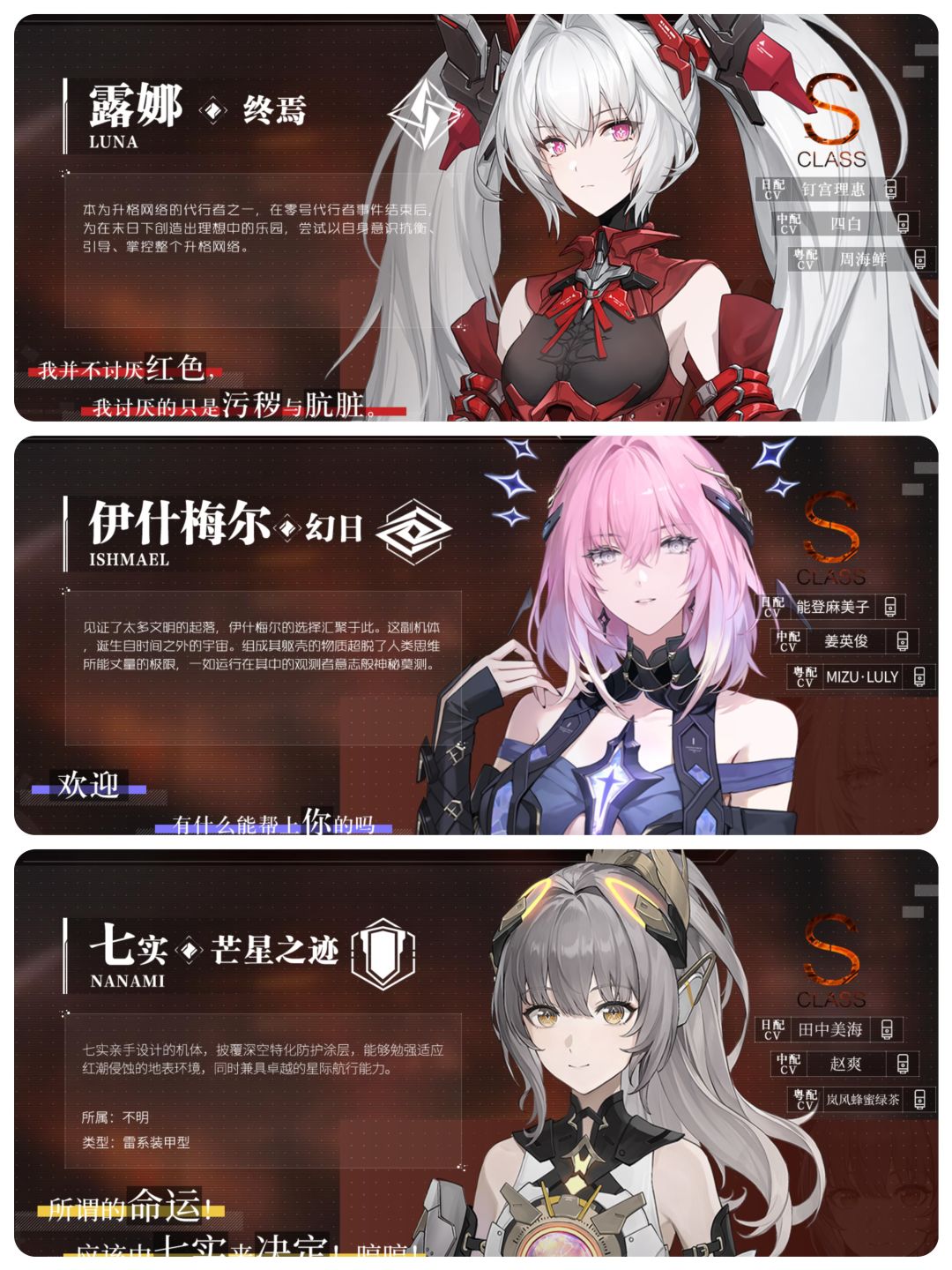 • 装甲型:明晰梦,可在宿舍委托商店中免费兑换50碎片,能减抗并补充一定输出。