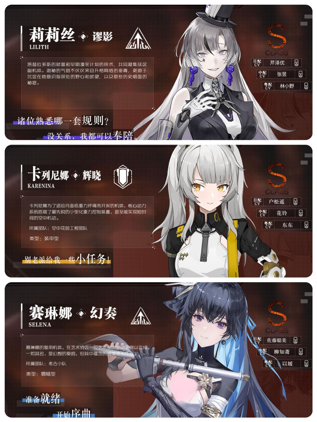 • 主C:莉莉丝·谬影,通过妄婪研发可免费获取,自身具有提供暗伤加成的能力。