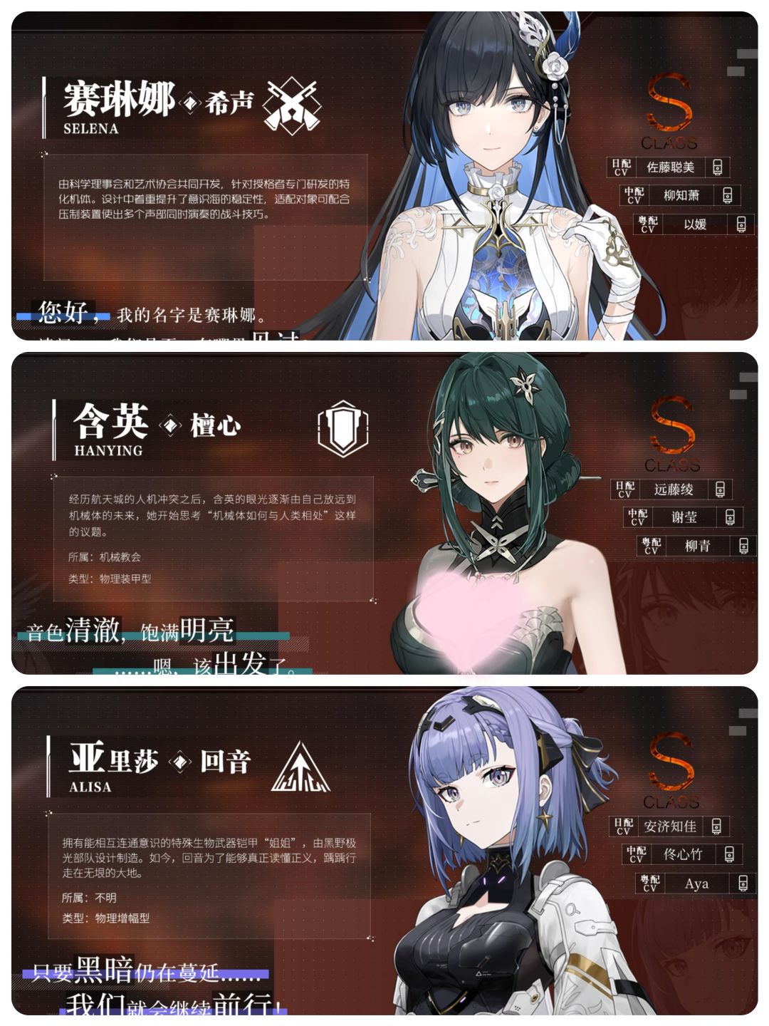• 主C:赛琳娜·希声,物理队核心输出,输出与续航能力出色。