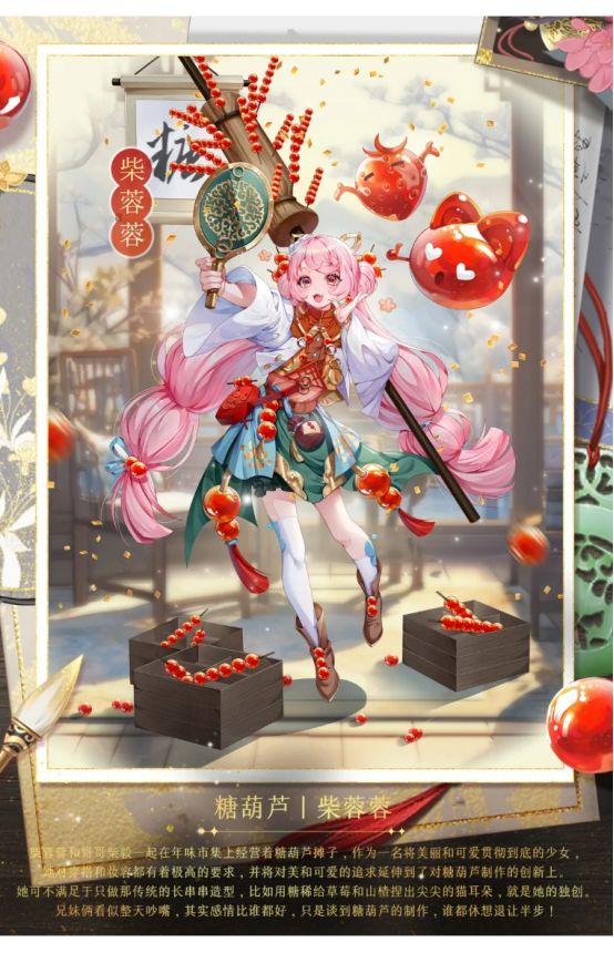 1、2月21日00:00至2月27日23:59期间,群贤毕至活动限时开启!参与活动,翻牌迎贤,即可有机会获得糖葫芦血统国士侍从“柴毅”及其信物“革挎包”、糖葫芦血统国士侍从“柴蓉蓉”及其信物“手持镜”