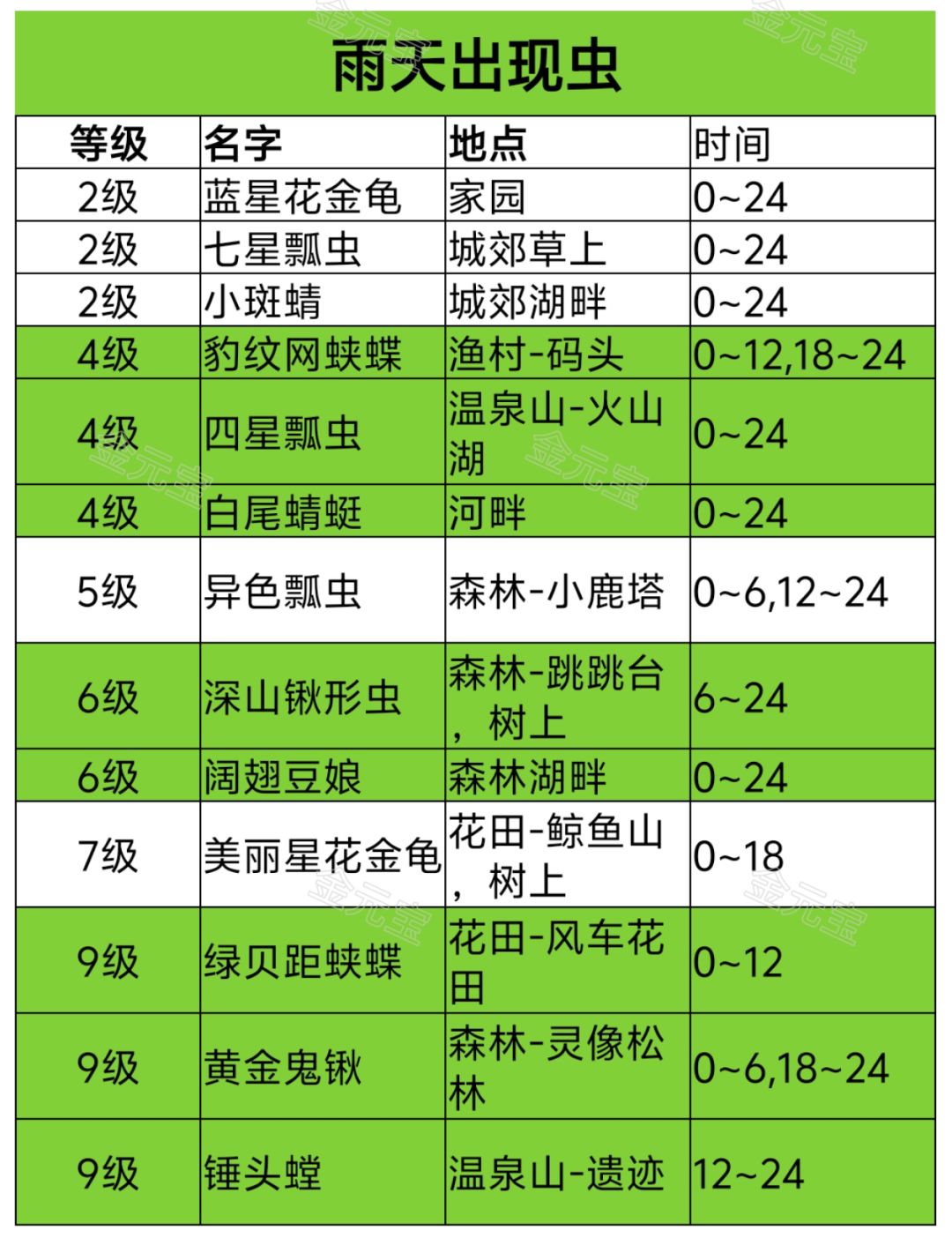 11-12级鱼虫鸟:紫背椋鸟 蓝头鹑鸠 印加燕鸥 花脸鸭 蓝脚鲣鸟 雪鸮 北极海鹦 红眉火尾雀 亚历山大凤蝶 兰花螳螂 南洋大兜虫 小十三星瓢虫 玫瑰青凤蝶 乳草蝗虫 火焰蜻蜓 歌利亚大王花金龟 豆娘鱼 鲸鲨 狮子头金鱼 金龙鱼 斗鱼 海月水母 绿海龟 鲯鳅 神仙鱼