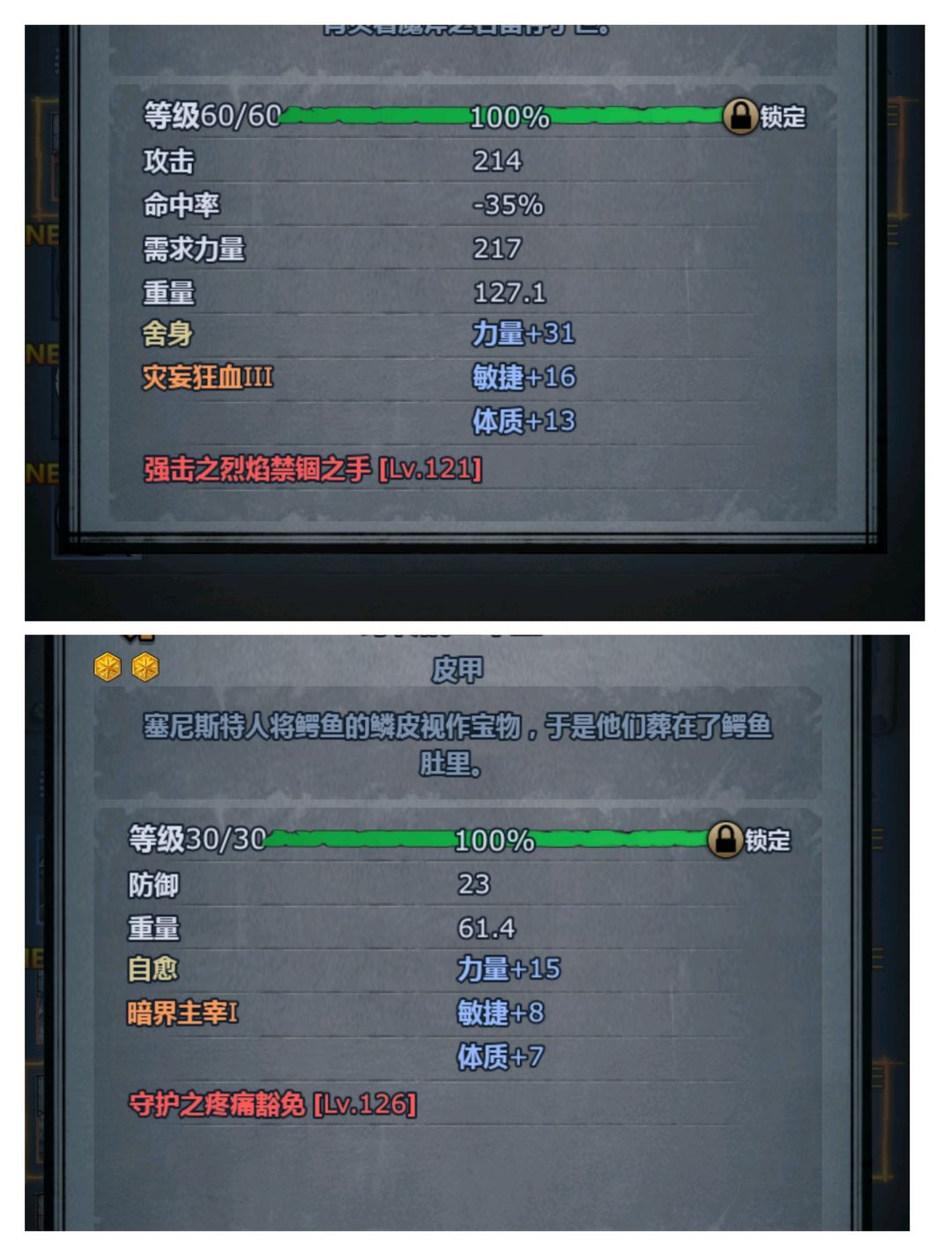 结论:力量对于狂战至关重要,力量越高数值越变态。注意加的攻击力不在面板显示哦。游戏中的实际攻击力会更高,残暴会更残暴。