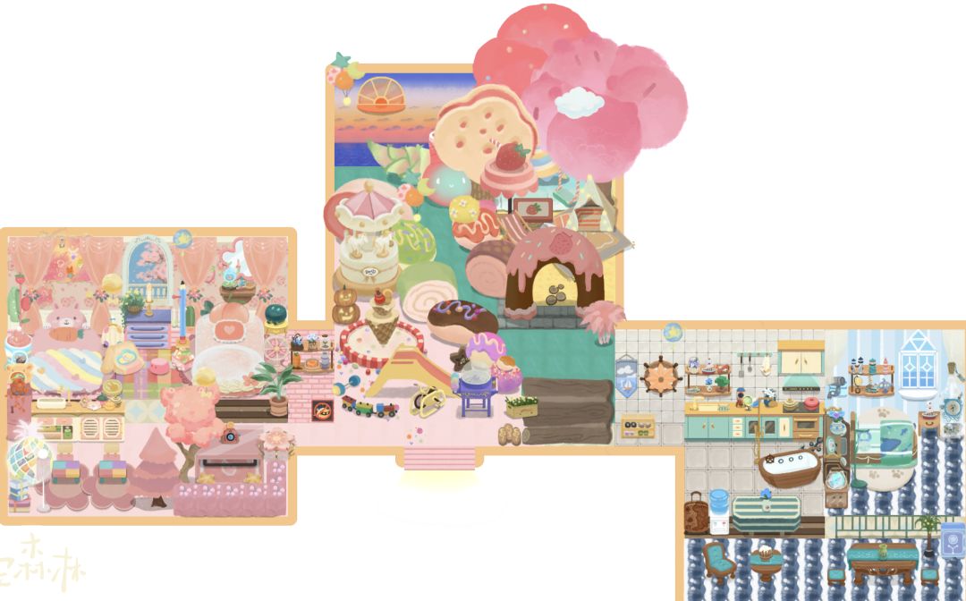 柯柯和柴柴:狗狗派对,合作开店,原木烘培风兔灵和贝贝:闺蜜合租,奶油与海洋的碰撞,粉蓝色主题