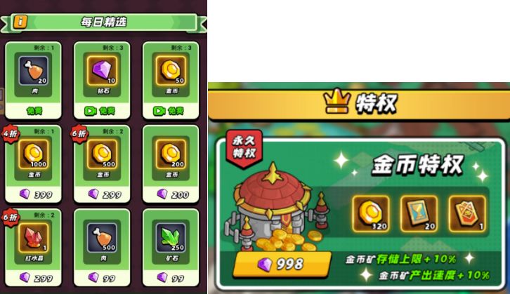 金币特权必买,永久增加金币产出速度。