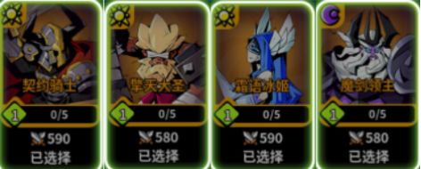 四活动英雄:契约骑士、擎天大圣、霜语冰姬、魔剑领主。