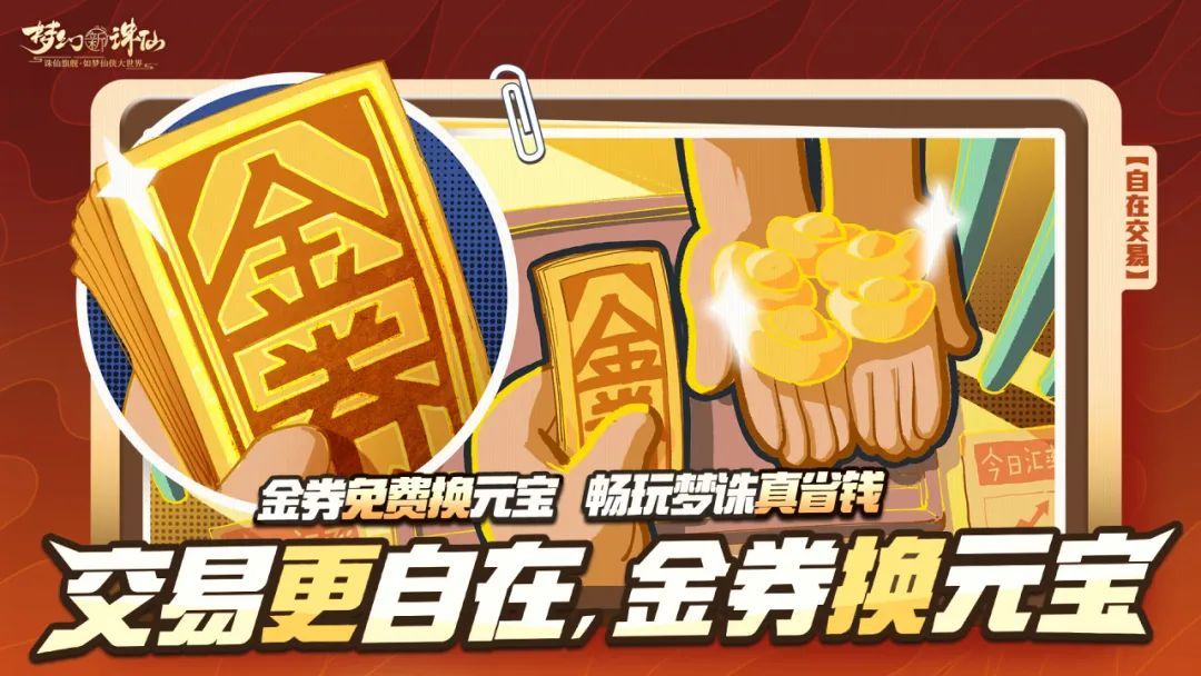 - 自在交易:参与玩法就能获取可交易道具,出售即可获得金券,道友赚取的金券不光能够购买商品,还能免费兑换元宝,实现边玩边赚金的快乐!
