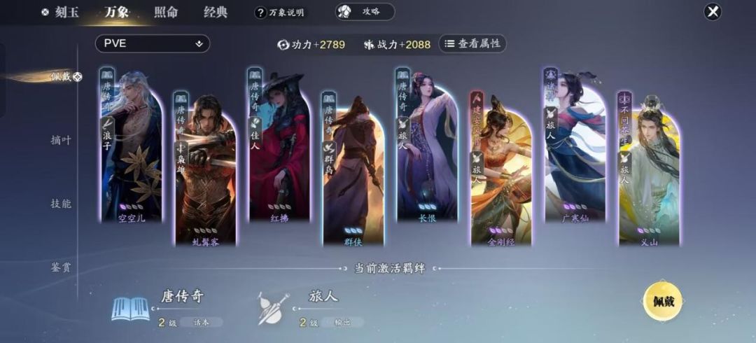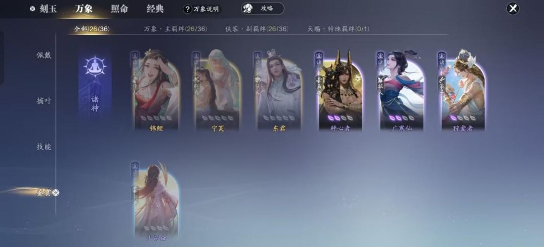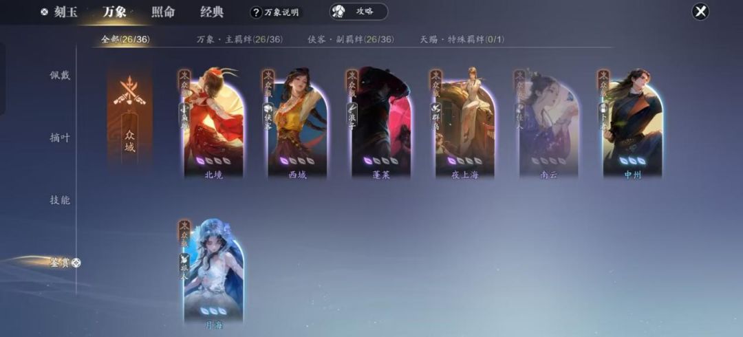 - 战场搭配:主羁绊建议诸神、众域等,副羁绊可以是侠客、枭雄、群鸟、佳人等。万象技能选择