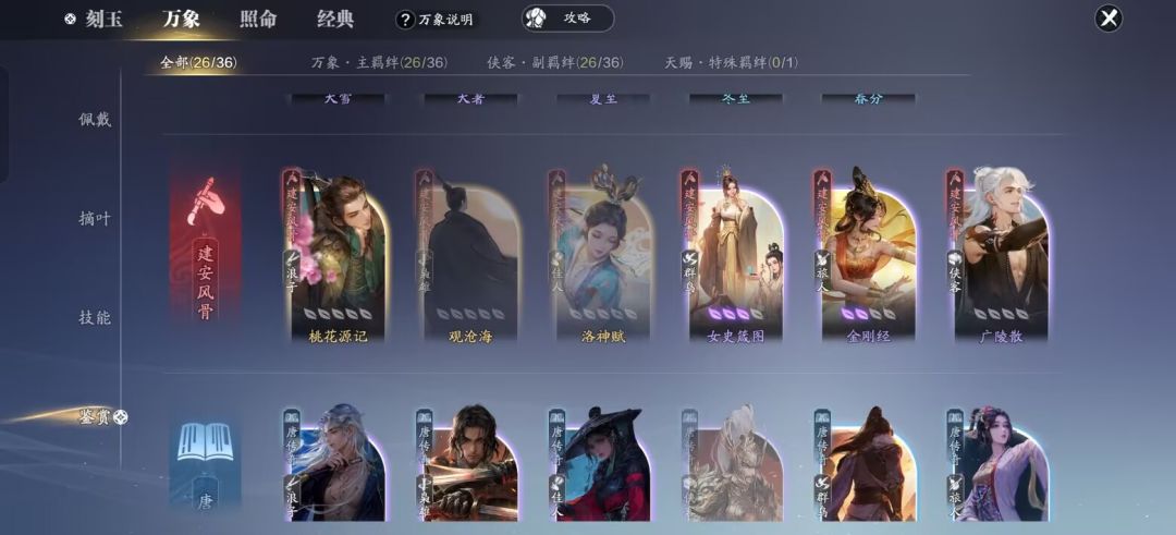 万象搭配:主羁绊建议选择建安风骨,等级越高越好。此外副羁绊有限选择[旅人] [枭雄] [浪子](远程)[卜者],这些哪个等级高选哪个。