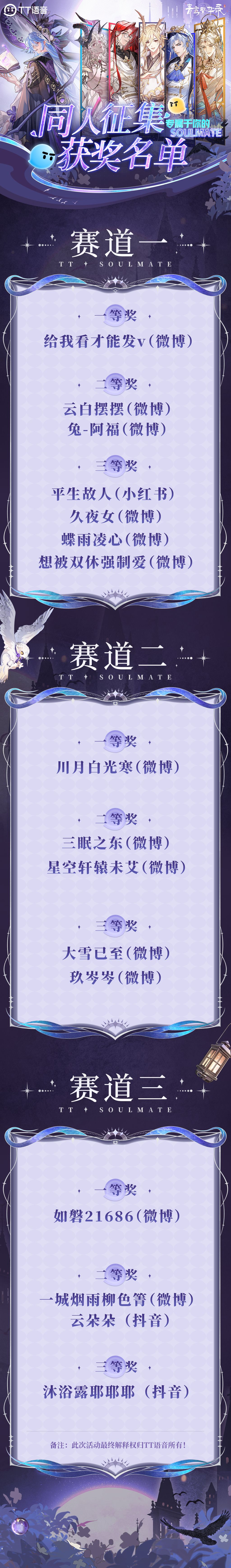 【青鸾繁华录×TT语音】同人征集获奖名单公示