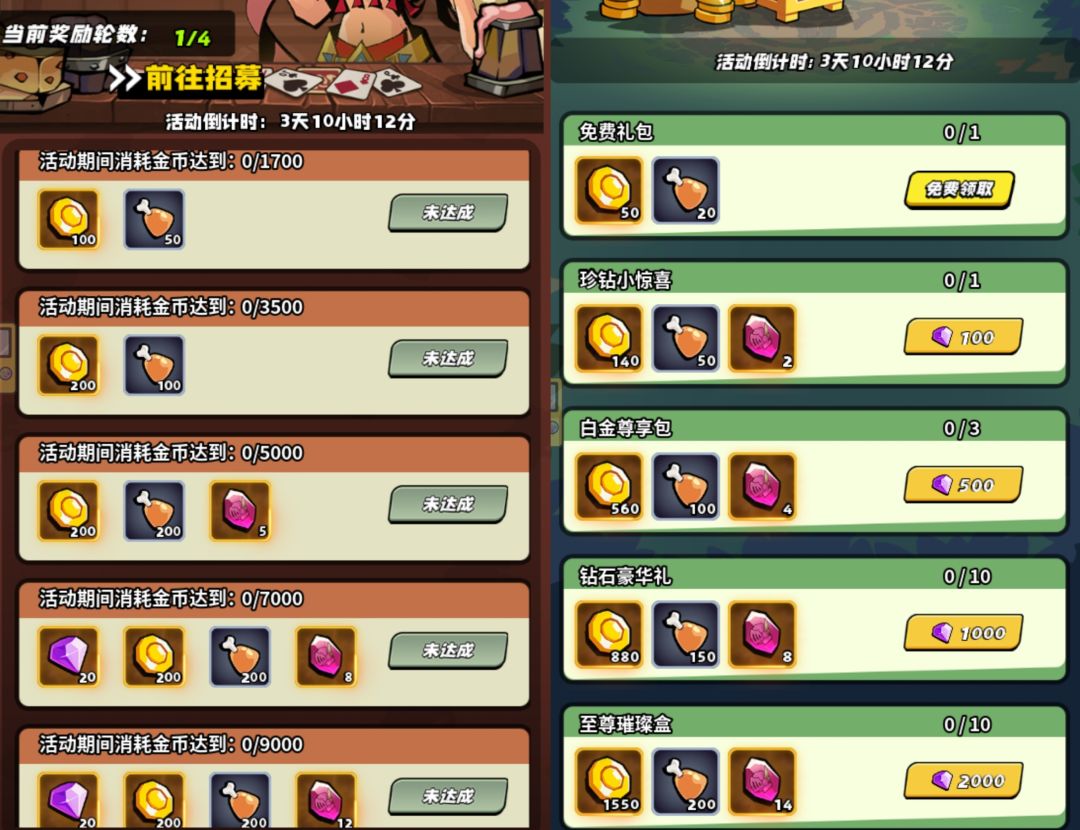 金币招募消耗和金币礼包
