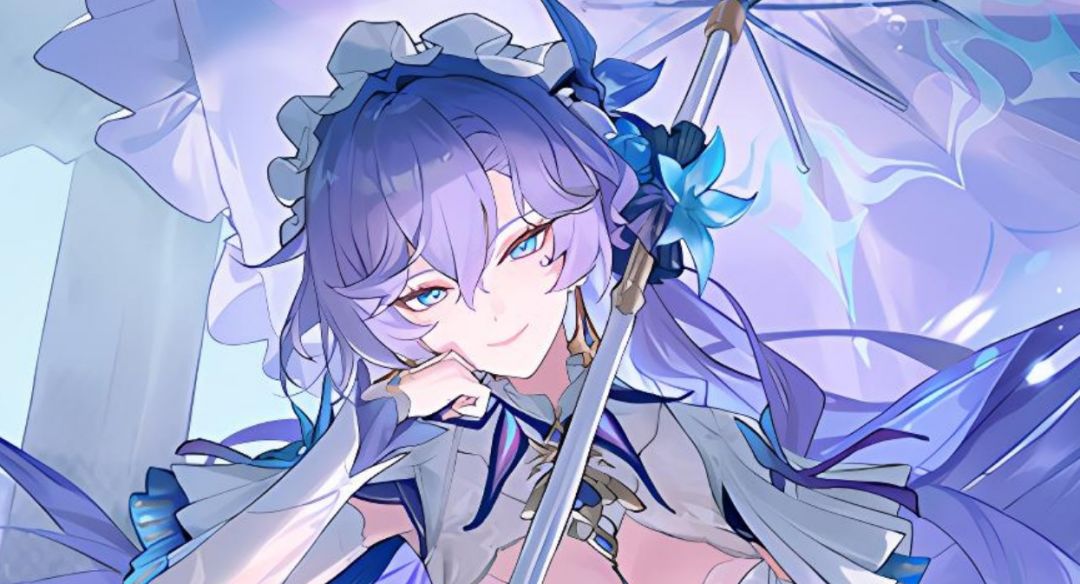 整体配色设计以紫色为主,像守岸人,而紫色比守岸人蓝深一个色度,与坎特蕾拉毒药夫人的身份和性格更加般配,以水母为原型的整体设计风格,手中的伞是水母的伞状体,翻飞的蓝裙象征水母的触须,眯着眼睛看一下,是不是很像~这个设计和粥里的水月有异曲同工之妙。