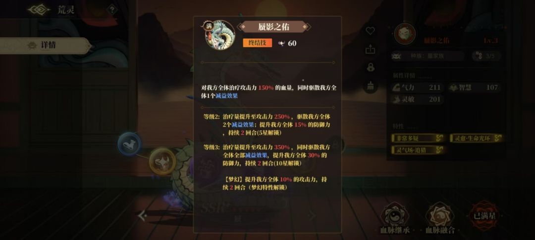 面对减益buff日益增多的琅琊环境,携带蜃可以在中期净化大量负面效果同时补充血量提升坦度。