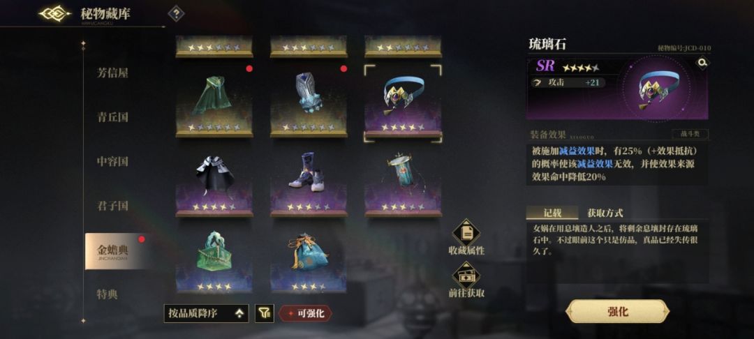「琉璃石」:增加抵抗,减少被附加减益效果的概率。