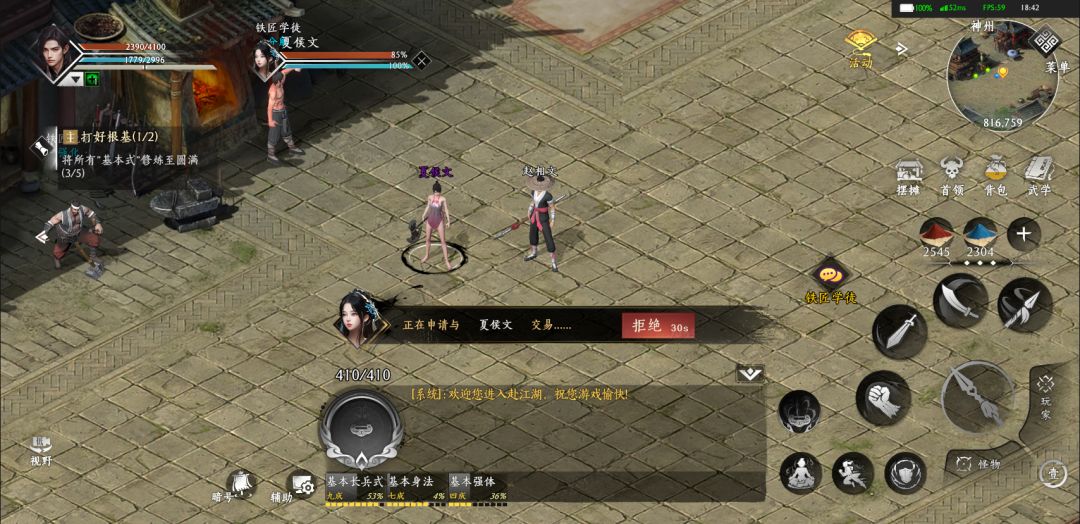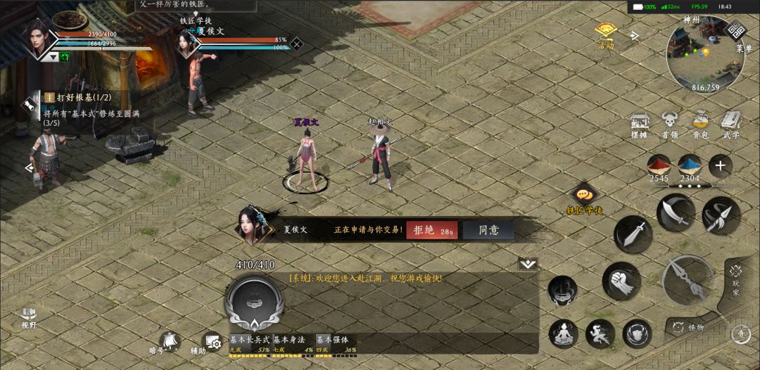 1. 寻觅交易伙伴:于《赴江湖》广袤的游戏世界里,穿梭在繁华的原点城集市,或是热闹的神州大地,任何地方找到您的交易对象 B 玩家。