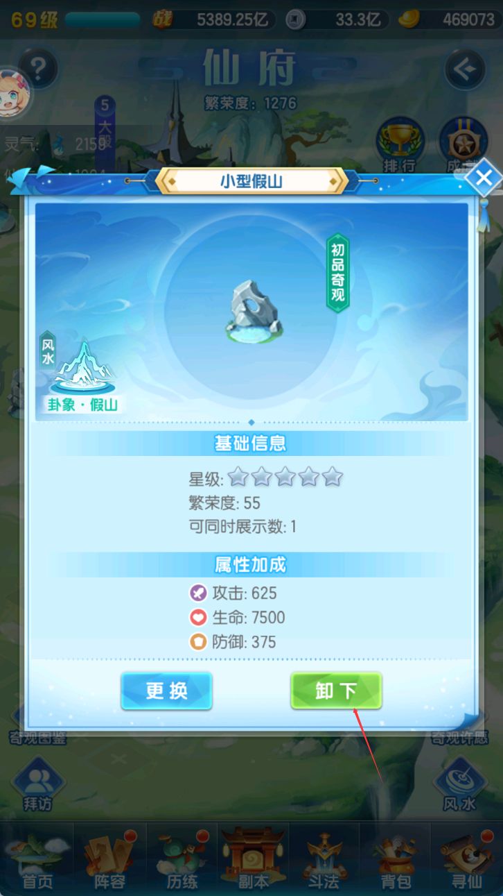 在仙府随意找一个安放下来建筑,将其在同一个位置,同一个建筑,反复卸下安放5次