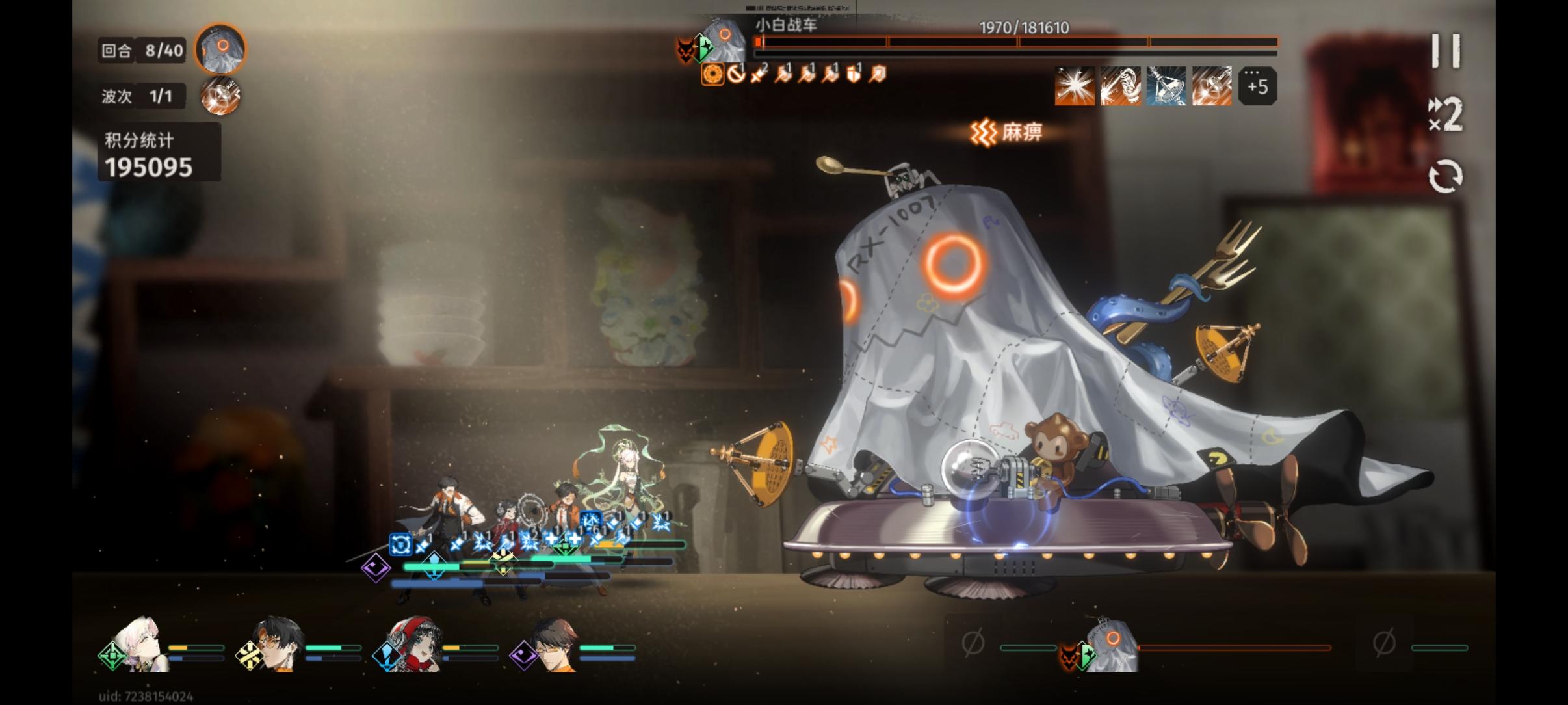 fw局长的高光时刻,只要BOSS放群攻那一回合给他沉默了就轻松过,洞明的盾掉了就给自己套,队长技能最好留给他防止没能量了。