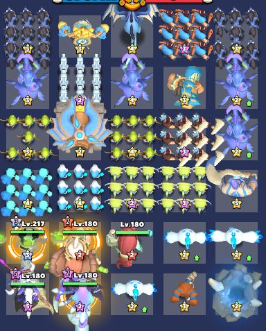 游戏阵容除了角色还有一个部分是小兵,小兵有很多种类,星级高的小兵上阵也会增加你的战力,不同的小兵属性也不一样,前期无所谓有什么上什么就行,同类型同星级的两个小兵还可以合成更高级的,需要注意的是获取的紫色和金色小兵自选包,紫色一般选独角骑士还有个冰冻鸟,金色可以选狼、白色兜帽法师、飞镖车(有一个就行,有些图会有用),有一个小兵抽卡的功能,需要花费金币抽取,除了任务需求不要去碰,金币后面会很缺