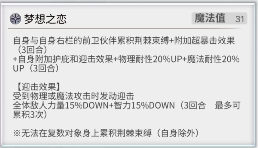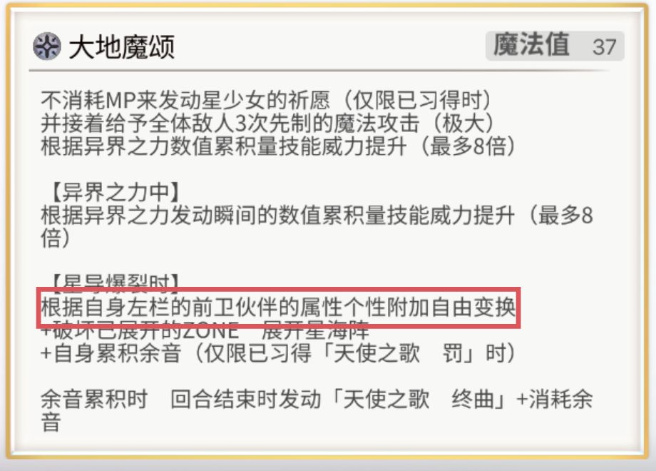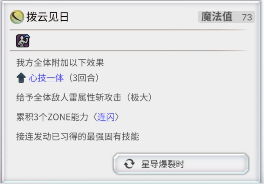 星导爆裂时则是为前卫所有附加联手效果+贯穿障壁。