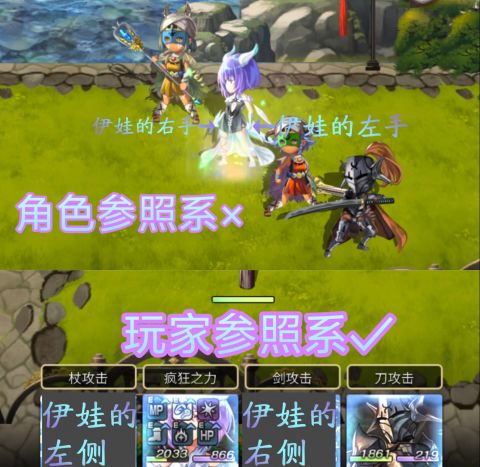 ①站位的左右区分:站位的左右并不是以角色模型为参照物,而是以玩家为参照,更准确的说,是以下方的角色头像为参照。