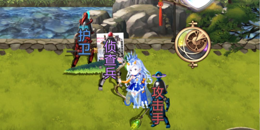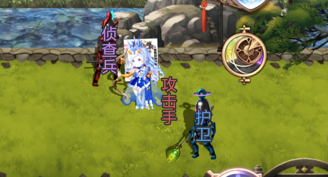 ①当前卫有4名角色时,从雪乃开始,从右往左依次为:雪乃【攻击手】【护卫】【侦查兵】