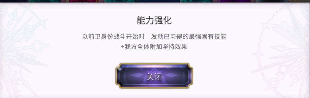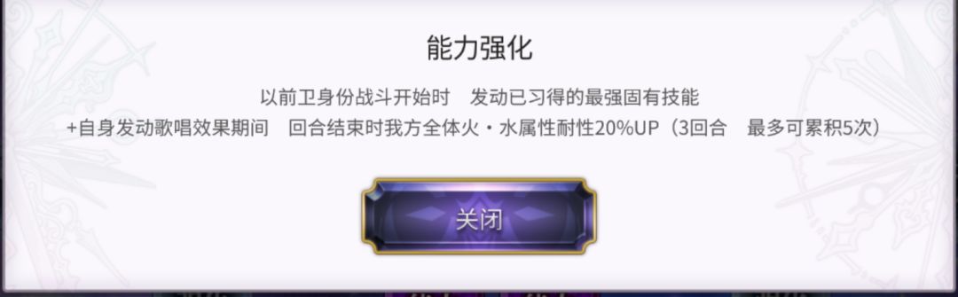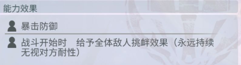 真正意义上的第一个根据站位提供增益的角色。能为双方提供1500的HP最大值提升,毕竟辛西娅AS本身的技能组就需要她拥有更高的HP上限。异常状态回复,若右侧队友为守护角色中了混乱状态,则可以解除混乱。