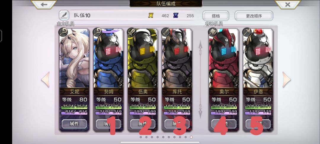 以上,就是血之契约的庇护效果判定顺序。看完前面的例子,你是不是感觉4和5没用啊?其实不然,接下来是全队补充血之契约后的判定顺序。因为我前面也说了,优先消耗数字更大的角色。这其中包括4和5。也就是若4和5在场时,无论当前站位如何,都将会优先判定5号角色的庇护效果。