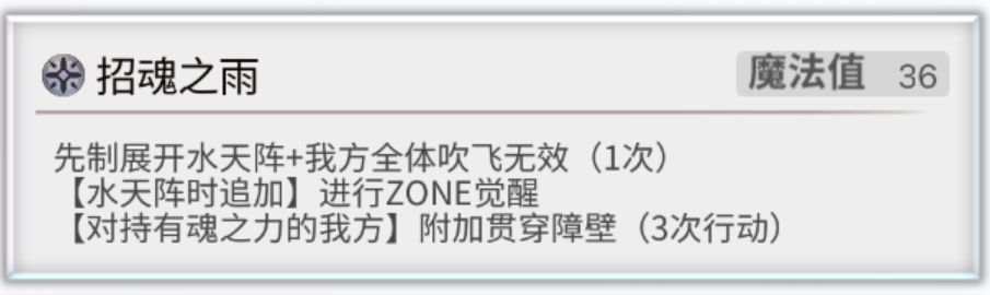 小技能招魂之雨,是个展阵+阵觉醒的技能,但只能觉醒水天阵。