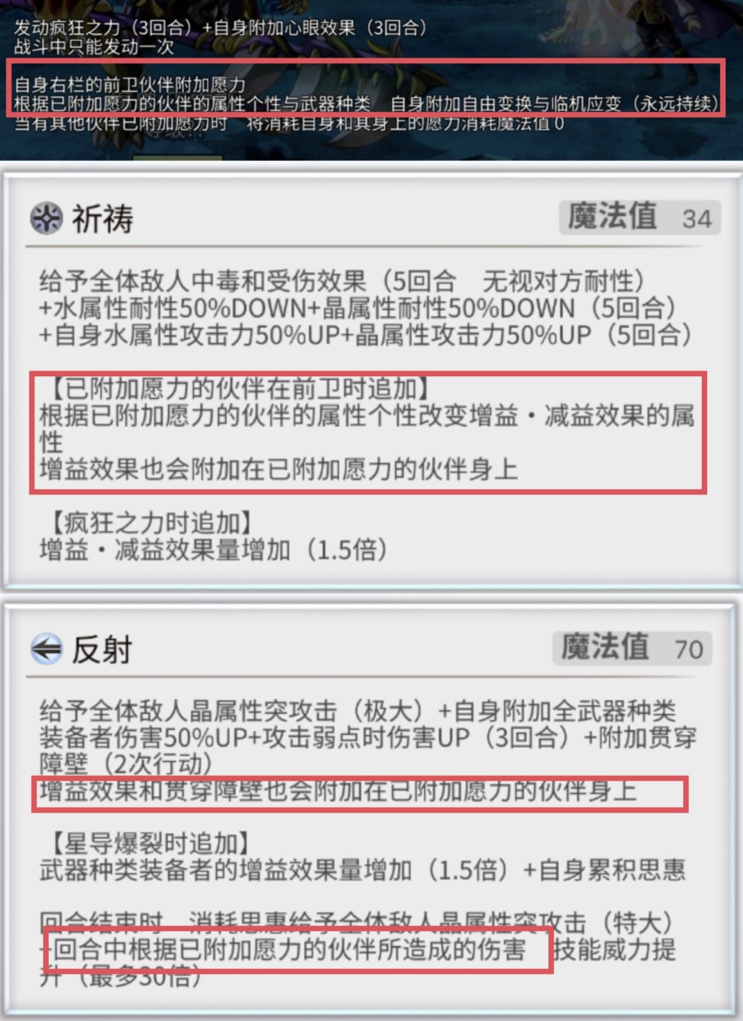祈祷与反射,这两个技能的增益效果都将会额外附加给持有愿力的队友。