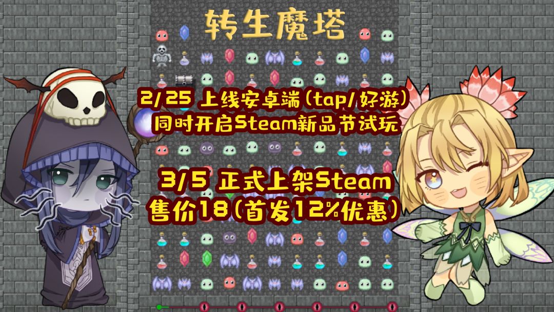 同时Steam转生魔塔已开放商店页面!将于3月5日发售。快来加入愿望单吧!