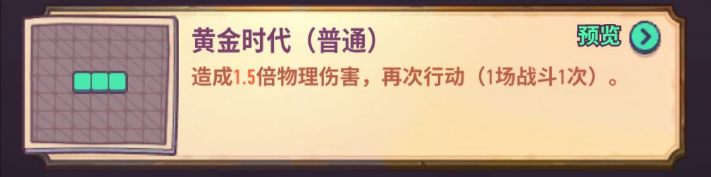 造成1.5倍物理伤害,再次行动(1场战斗1次)。