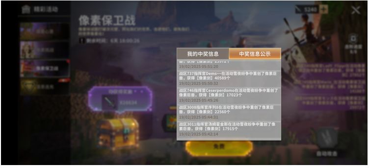 2.左下角为累计奖池,各大区共享,有概率获得几千到几万把剑。