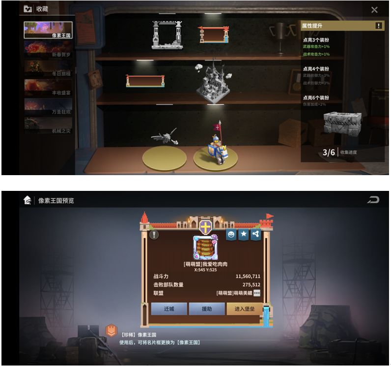 2.三件套、四件套和六件套可解锁属性加成,六件套时赠送名片框