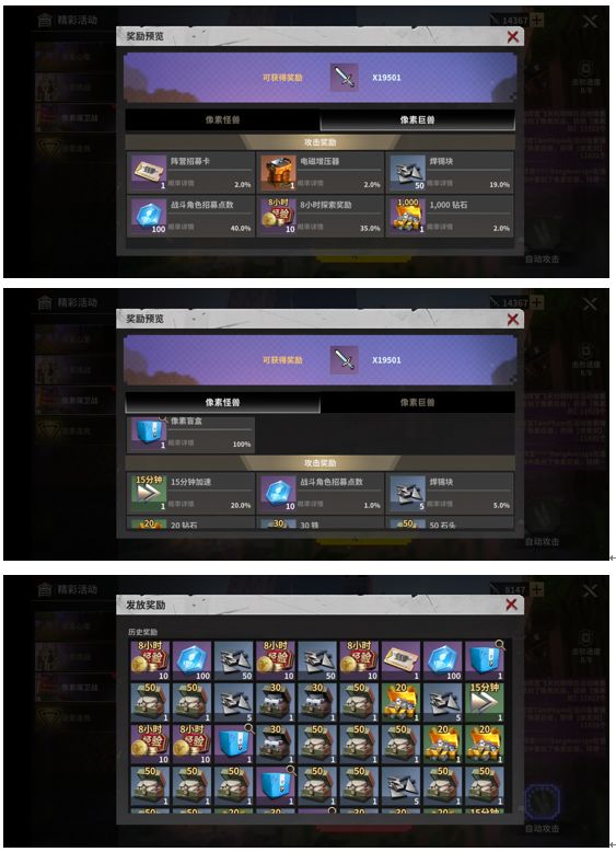 3.击杀像素怪兽概率刷新出像素巨兽,攻击像素巨兽掉落高级道具。